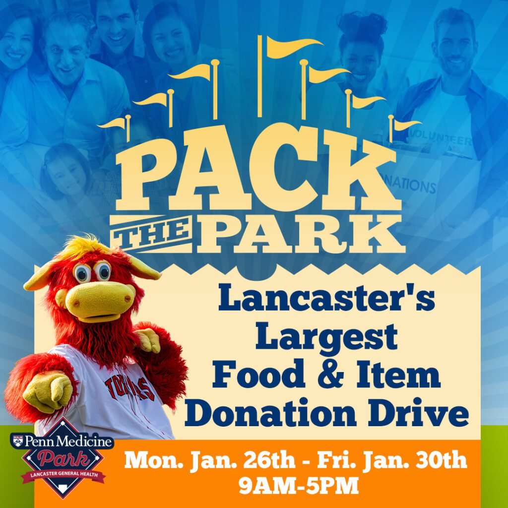 Penn Medicine Park will host the 6th annual Pack the Park from January 26-30. The goal is to fill skids throughout the entire stadium concourse level with donated items for those in need in our community.